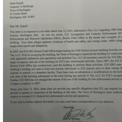 Mass. lawmakers press ICE for answers on use of Burlington office for detainees