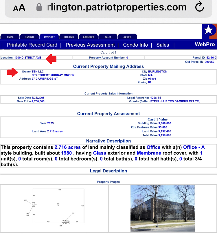 Robert Murray is a trustee of the Cambridge Financial Group. This document reports his other holdings. He is a 100% owner of both Cafe Escadrille and Ten LLC, which is the owner of 1000 District Ave, the ICE facility.